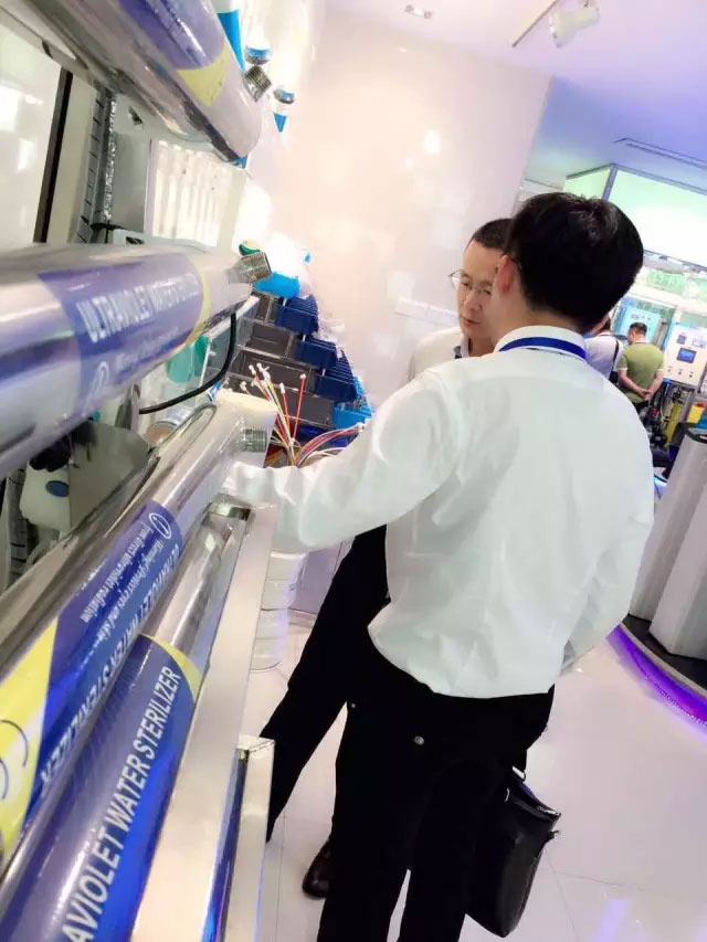首先參觀的是工廠的樣品間,客戶們對灝鉆琳瑯滿目的凈水器表現出了極大地興趣。