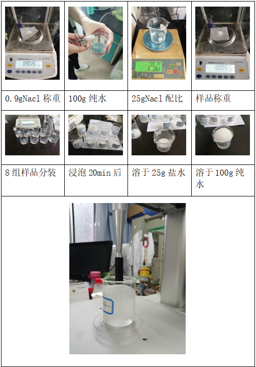 本次實驗將使用上海保圣質構儀及所配備的凝膠探頭,對四組不同的顆粒狀高分子材料吸水性樹脂進行質構測試。對比四種樣品吸水飽和后凝膠強度差異,同時對比樣品分別吸收純水及0.9%Nacl溶液時凝膠強度差異。
